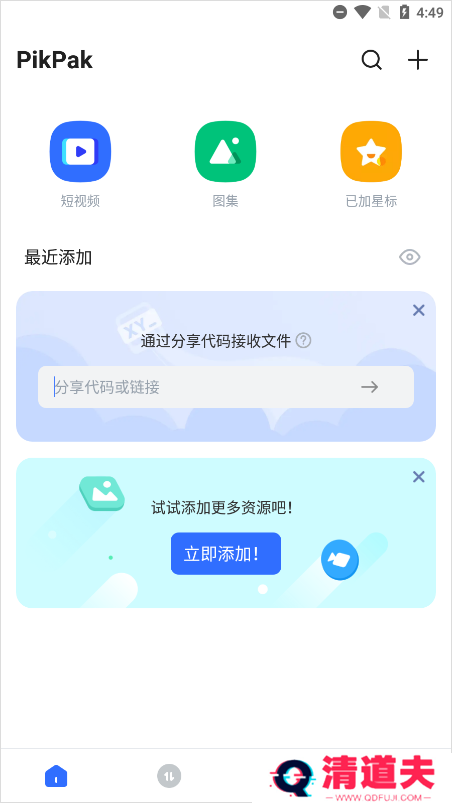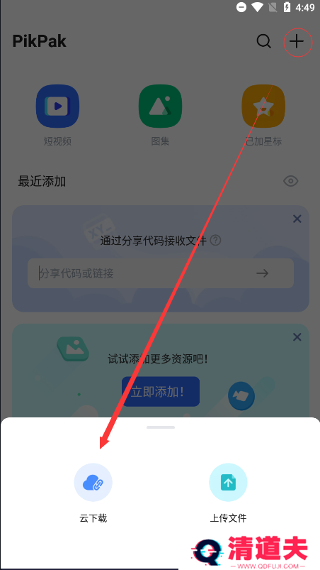 4、来到首页,根据短视频、图集、已加星标等来筛选已上传的文件