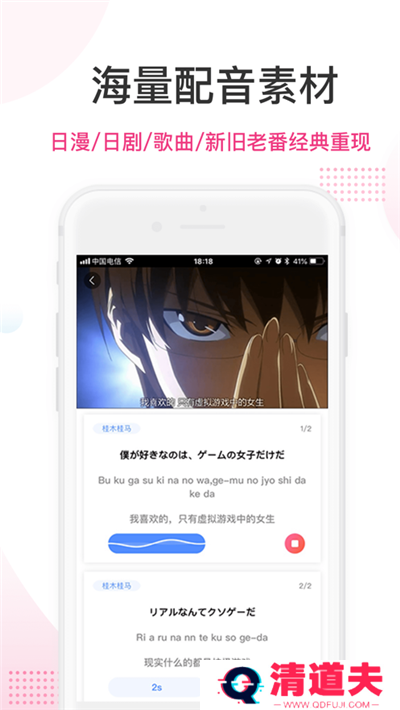 这里为用户提供了配音学日语的方式,可以通过配音去练习纠正自己的口音问题。《羊驼日语》非常实用的日语学习软件,精选了海量的日漫、日剧、歌曲等资源,发音上打好坚实基础。