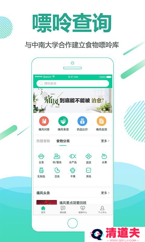 别痛风使用方法1、进入首页,即可选择热搜食物、食物分类、痛风头条等相关信息查询