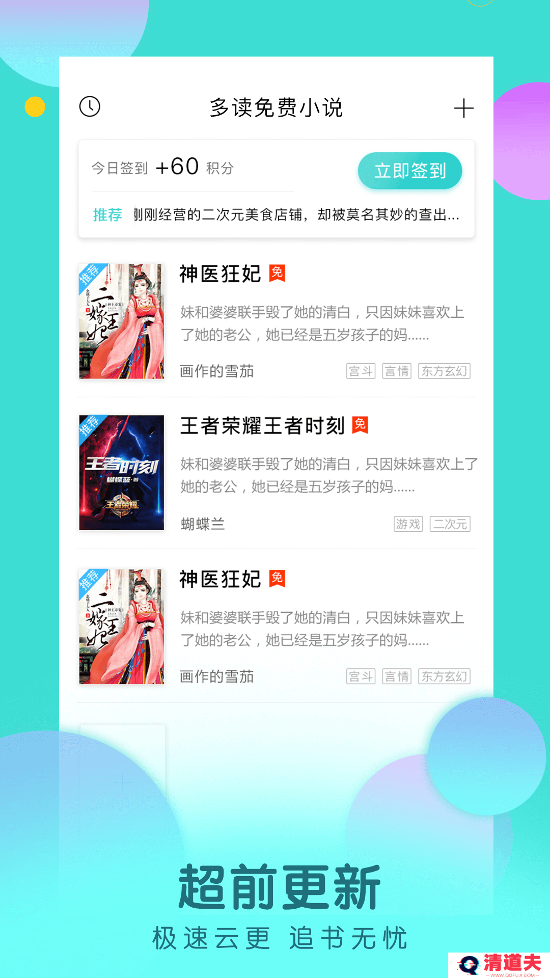 多读免费小说特色精准的小说推荐,根据各个用户的阅读风格推荐小说;