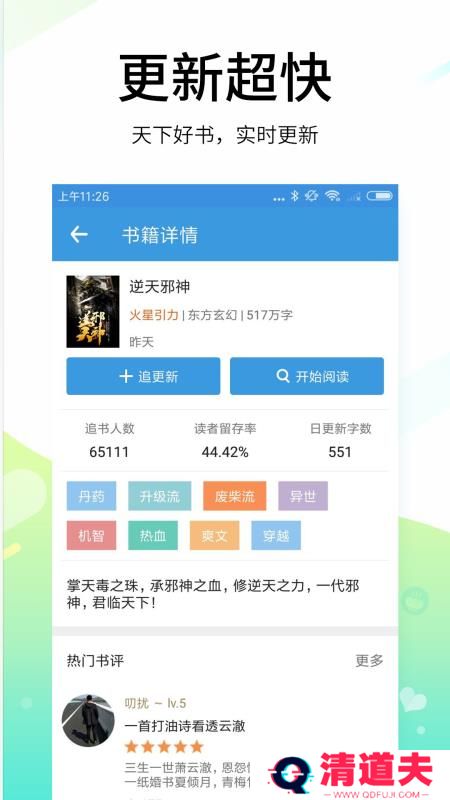 在手机上可以随时开启阅读模式,可以及时的满足读者的阅读欲望;