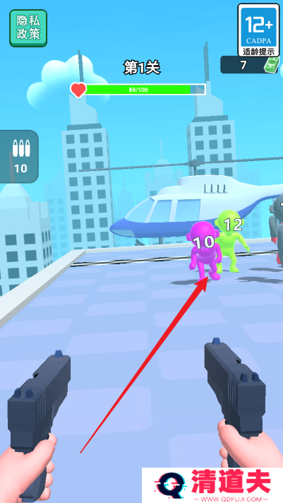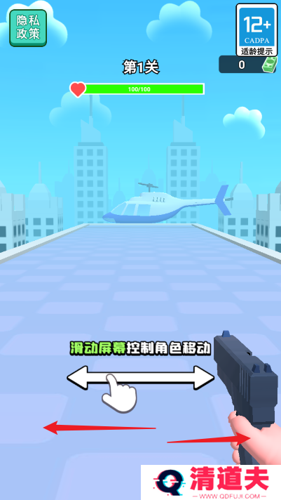 3、结合了射击和跑酷的乐趣,左右移动闯关