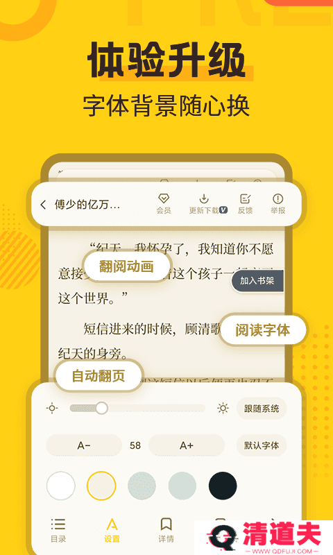 3、【高清设置】护眼模式、仿真等多翻页效果、自定义阅读设置,统统帮你搞定~