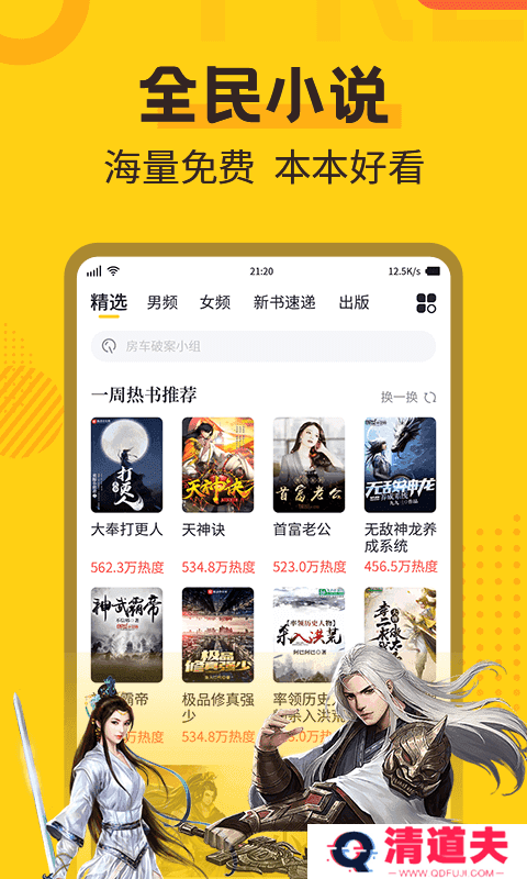 1、【拒绝书荒】全民小说app拥有海量数据的精品书城,强大的搜索引擎,从此再无书荒~
