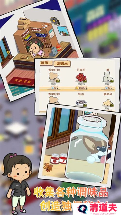 4、调料是烧烤的灵魂,玩家需要收集制作调料的材料,通过制作秘制调料来提升食物的口味和店铺的盈利能力。