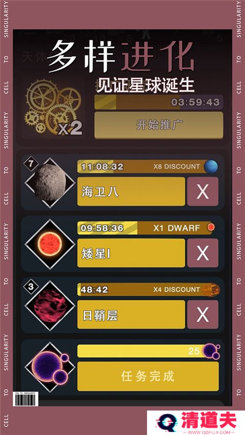 4、玩家可以通过点击放置的玩法了解到生命最初是如何演化来的。游戏还允许玩家释放进化的未来和技术奇点的神秘面纱。