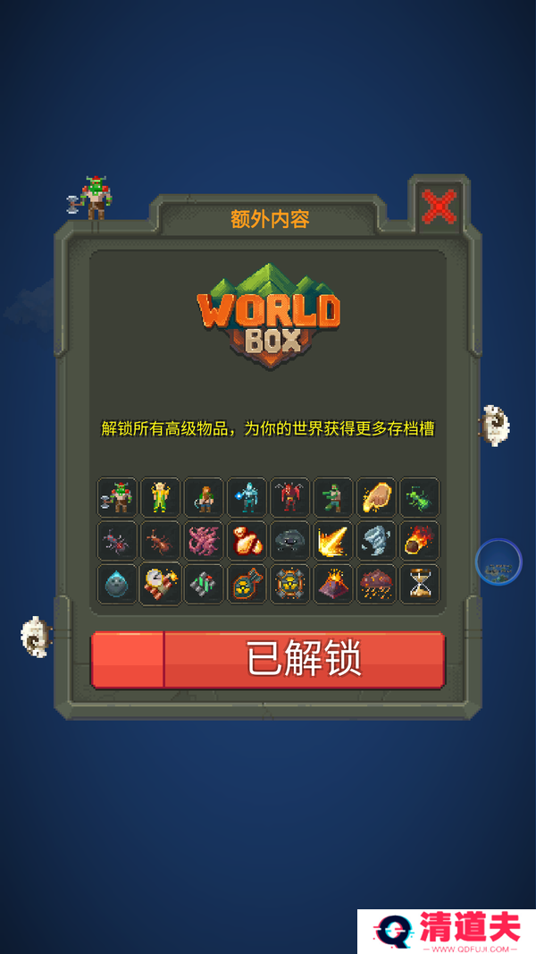 世界盒子修仙版是一款非常有意思的能够在游戏中扮演成为一名上帝,在游戏中你能在世界上进行创造更多不同的建筑物,并且也能在游戏中创造人类或者其他的动物!