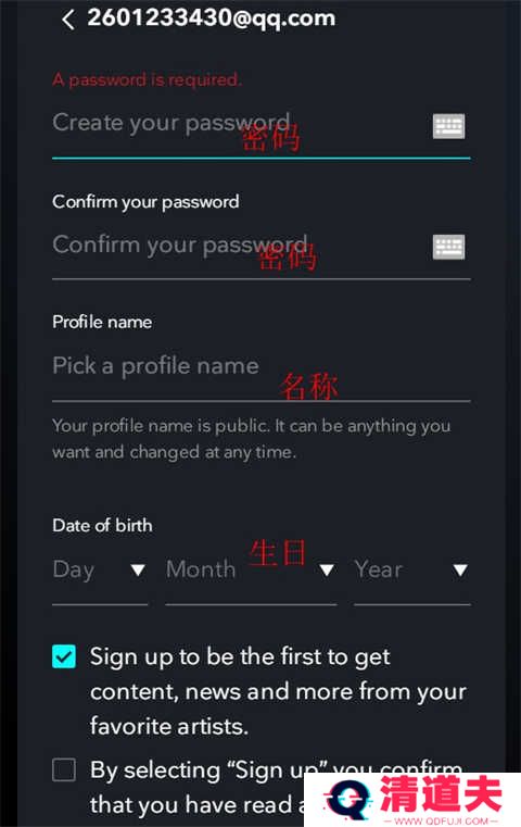 接下来输入两次密码并选择生日日期后点击继续
