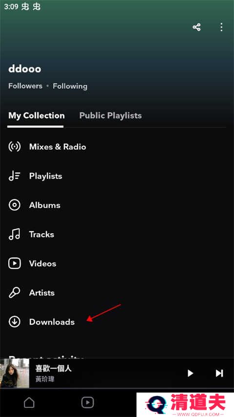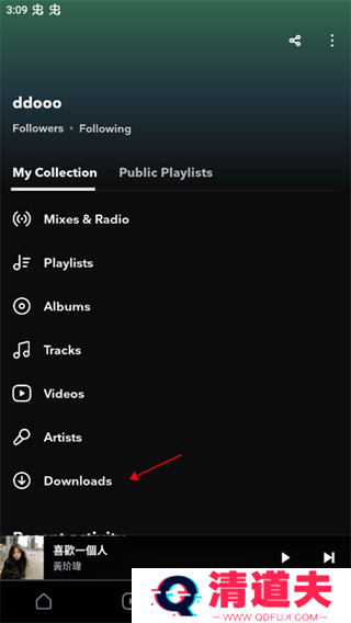 4.下载好的歌曲在我的界面中的downloads选项中查看。