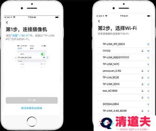 连接摄像头Wi-Fi(以TP-LINK_IPC为开头的Wi-Fi),点击【下一步】选择需要连接的Wi-Fi,输入密码即可成功添加设备;