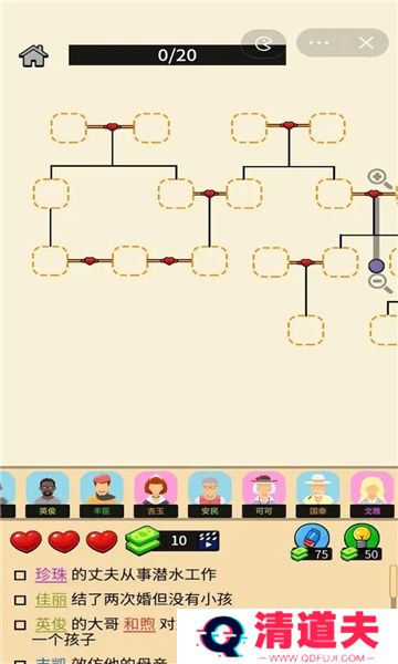 游戏简介在认祖归宗中,玩家将扮演一位家族历史的研究者,通过解开一系列逻辑谜题来揭示家族成员之间的关系。游戏设计了多种玩法,包括每日挑战、限时关卡和故事关卡,每种玩法都有其独特的挑战和乐趣。游戏攻略1. 仔细阅读线索文本,提取关键信息。2. 观察家族成员之间的关系,合理拖动头像。3. 在限时关卡中,合理分配时间,快速作答。4. 故事关卡中,深入理解故事情节,找出隐藏的线索。游戏玩法1. 面对单条线索文本,提炼关键信息,完善族谱。2. 在限定时间内完成解谜,紧张刺激,挑战自我。3. 阅读完整的故事,从中厘清线索,享受沉浸式体验。游戏说明1. 线索解读,玩家需要解读文本线索,找出家族成员之间的关系。2. 通过拖动人物头像到正确的位置,补充完整族谱。3. 道具使用,完成关卡后获得的道具可以用来兑换角色,建设社区。游戏特色1. 丰富的关卡设计,每日挑战、限时关卡和故事关卡,提供不同的游戏体验。2. 逻辑推理,锻炼玩家的逻辑思维和推理能力。3. 家族历史,探索家族历史,了解家族成员背后的故事。4. 社区建设,用道具建设自己的社区,增加游戏的趣味性。5. 沉浸式体验,故事关卡提供完整的故事情节,增强玩家的代入感。