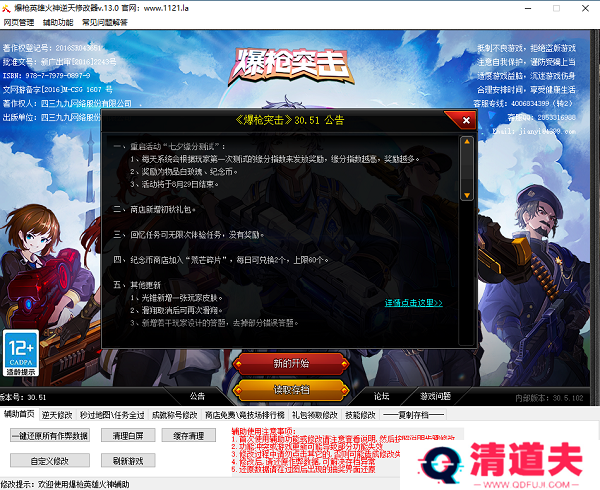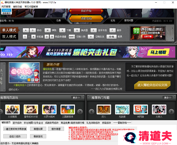 4399爆枪英雄修改器2024各位玩家可以来修改逆天,修改勋章等,让你轻松让你拥有人物无敌、秒杀、百分百闪避、无限战斗力以及自动瞄准等变态功能,并且绿色五毒,使用起来非常方便,如果你也喜欢爆枪英雄这款游戏,那么千万不要错过了,快来尽情体验吧!