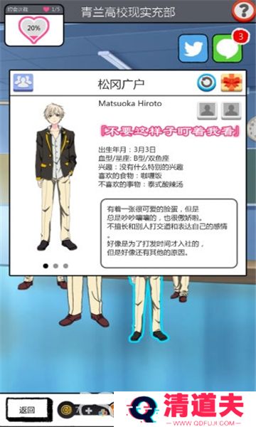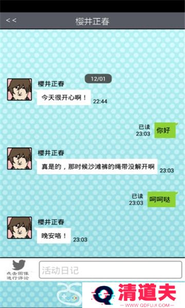 游戏简介青兰高校现充部的故事背景设定在一所普通的高中,玩家扮演的主人公因为一系列巧合加入了现充部。现充部的活动包括与社团成员的约会,但这些活动都需要一定的费用。因此,玩家需要通过打工来赚取活动经费,同时还要参与社团的各种活动,与社团成员建立关系。游戏攻略1.合理安排时间,平衡打工和社团活动,确保有足够的资金参加约会。2.注意社团成员的喜好,选择合适的约会地点和活动,提高他们对你的好感度。3.关注社团成员的动态,及时参与他们的活动,不要错过任何提高关系的机会。游戏说明1.游戏中的打工机会多样,包括便利店、餐厅、家教等,每种工作都有不同的收入和时间要求。2.社团成员有各自的性格和喜好,了解他们的特点可以帮助你更好地与他们互动。3.游戏中的约会活动需要消耗一定的资金,合理规划你的经济状况,确保能够参与所有想要的活动。游戏玩法1.通过打工赚钱,为社团活动和约会准备足够的资金。2.参与社团活动,与社团成员互动,提高他们对你的好感度。3.选择合适的约会活动,根据社团成员的喜好来安排,增进彼此的关系。游戏特点1.丰富的角色设定,每个社团成员都有独特的性格和故事。2.多样的打工机会,模拟真实的校园生活体验。3.自由的约会系统,玩家可以根据自己的喜好选择约会对象和活动。