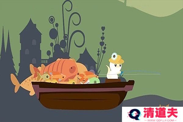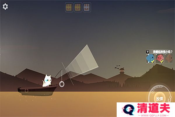 1. 进入游戏后我们就变成了这只猫咪,按照字幕的提示,控制船的的方向,找到合适的钓点;