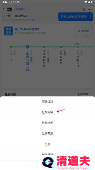 2、然后点击右上角的三个点,选择赶车闹钟