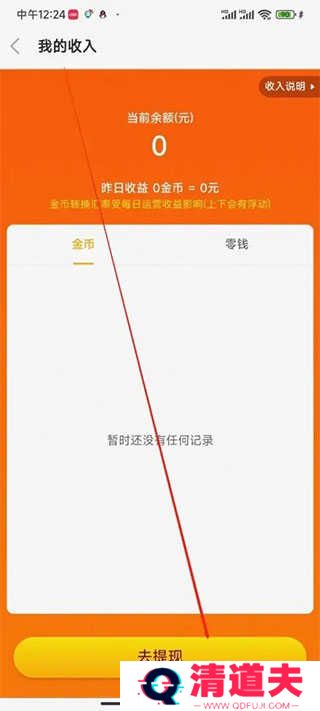 3、获得的金币可以点击右上方的我的收入进行提现