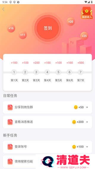 2、每天签到可以获得金币、并且做下方的任务也可以获得相应的金币