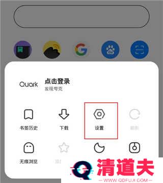 3、 接着在打开的夸克组成当中点击右上角的设置图标;