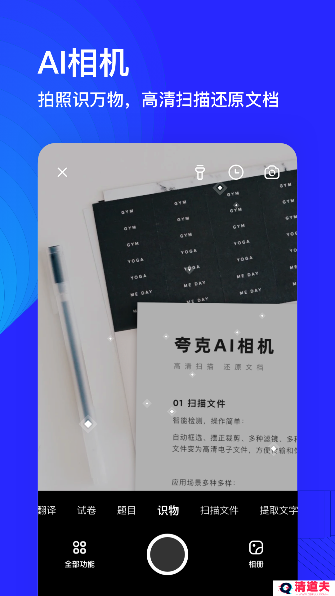 3)AI相机扫描文件持续升级,可高清还原文档,还能一键去除水印~