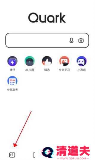 1、首先要打开夸克,然后进入到软件首页界面中,点击右下角的红框所示位置,进入到其界面中;