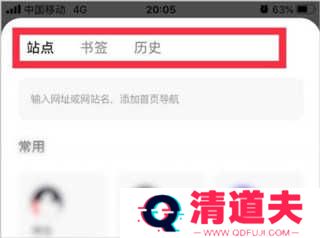 3、跳转到如下界面,这里可以添加站点、书签、历史到主页;