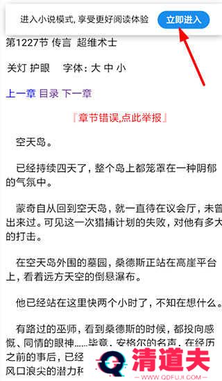 接下来在进入了小说的阅读页面后,大家就可以通过上方的“立即进入”按钮,直接点击进入小说模式了;