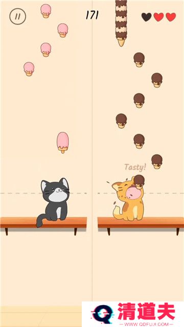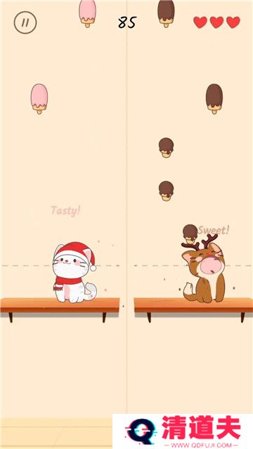 猫咪二重唱最新版是一款休闲的节奏解压游戏,游戏非常的有趣,还有非常丰富的音乐曲库,可以和众多猫咪一起体验不同风格的音乐,玩级通过滑动屏幕上的小猫来吃天上掉下来的冰淇淋,吃的越多,分数就越高,就会变的越来越强,可爱的画风,优美的音乐,都是好游戏的体现,快来体验吧。