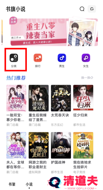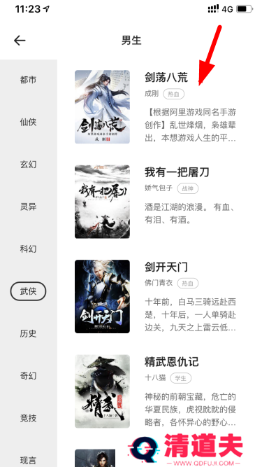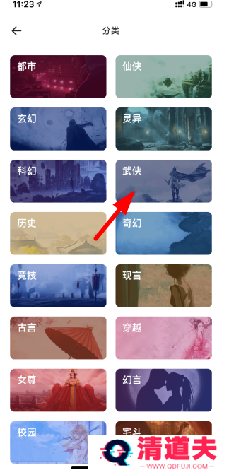 3、点击“分类”后,可以选择自己喜欢的分类,这里选武侠。
