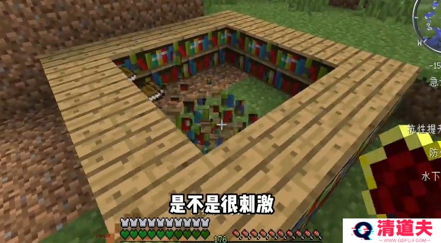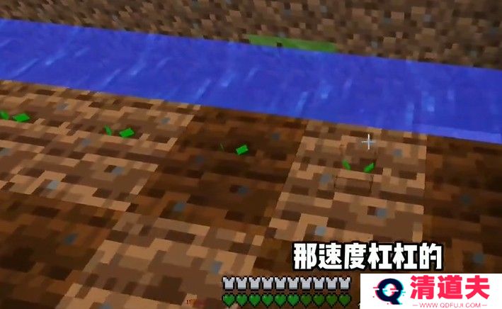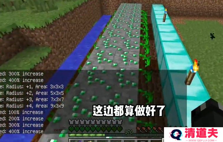 10、接着我们拿上钻石把这一圈都围上,然后在附魔台我们做出绿宝石麦种,种在我们锄好的地上面。