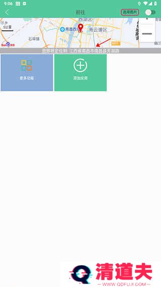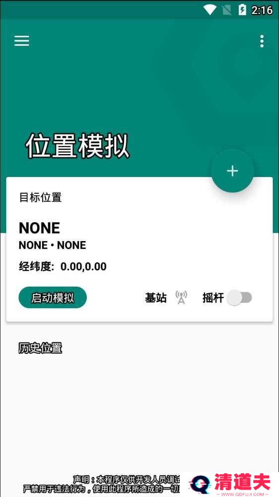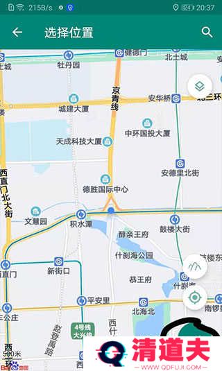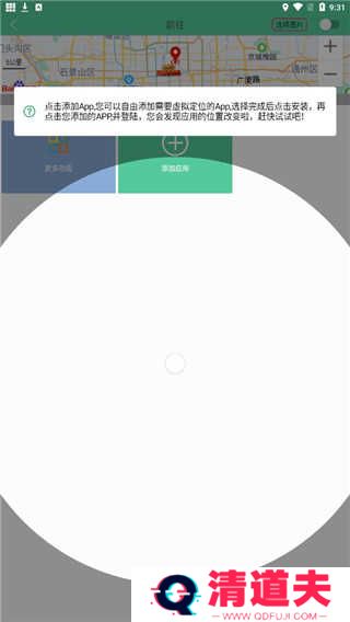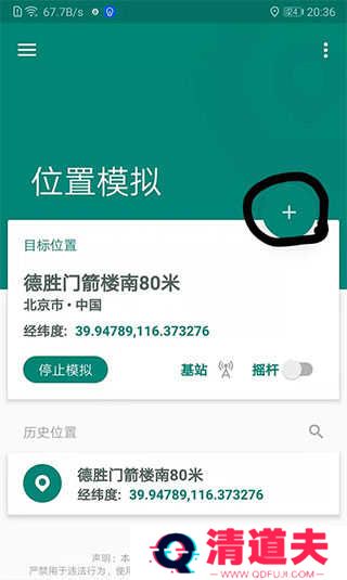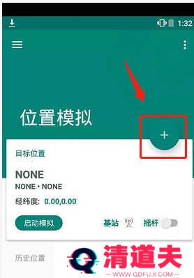 4、然后我们再点击fake location 应用界面里面的加号“+”按钮,进行位置选择。