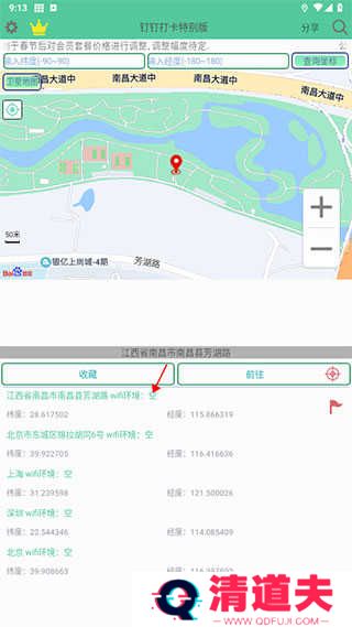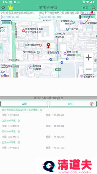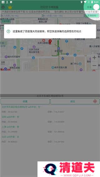 1、首先在本站下载钉钉打卡虚拟位置软件后打开,接着你可以收藏自己的坐标。