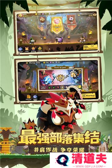 3、游戏里的库库姆有普通、稀有、史诗和传说四大品质。玩家可以自由搭建组配库库姆部队,击退魔族并获得胜利。