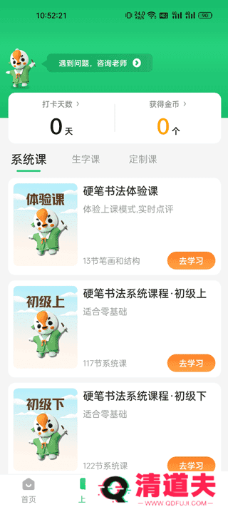 3.在上课界面可以进行书法课程练习,每门课程都是系统学习