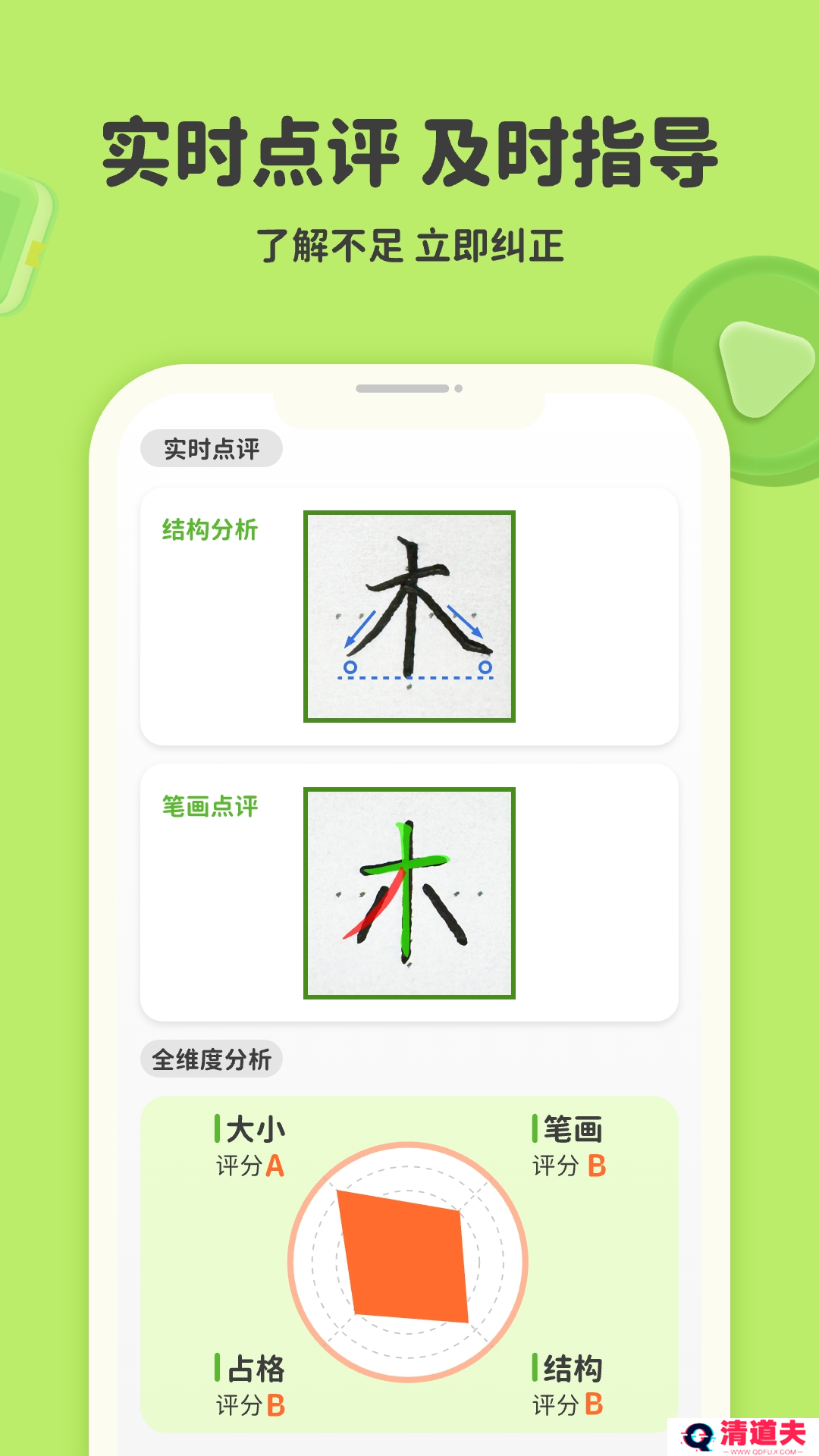 针对每次练习写字,进行实时点评,精确到笔画的讲解;又快又专业。