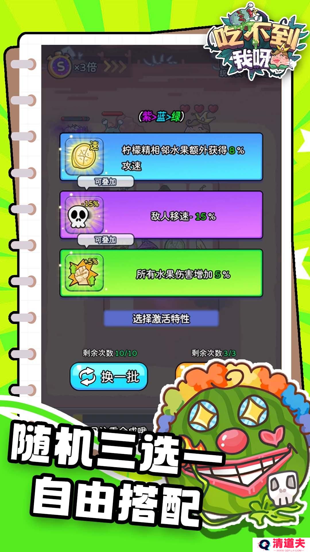 4、可以把相同的水果合并,提高水果的攻击能力;