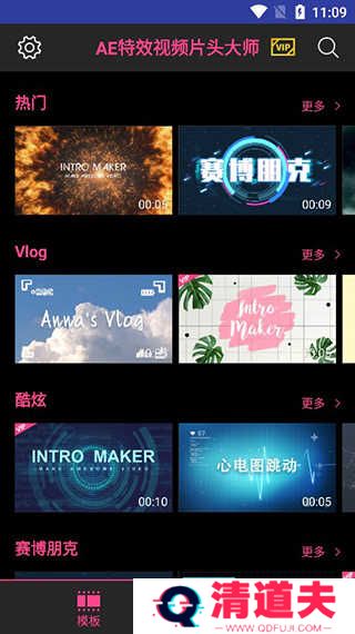 1、进入首页后,找到一个自己喜欢的特效视频模板。