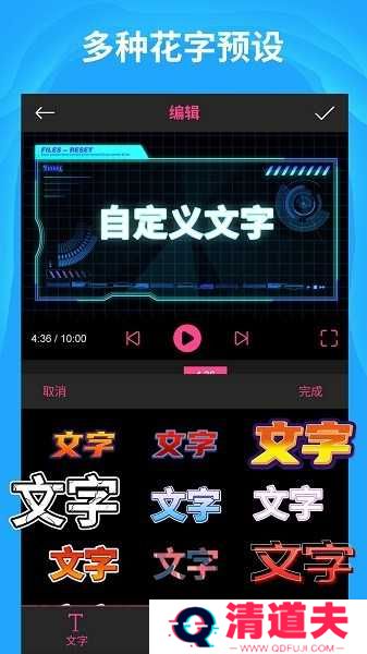 3、对视频进行添加文字、贴纸的操作,然后点击右上角的。