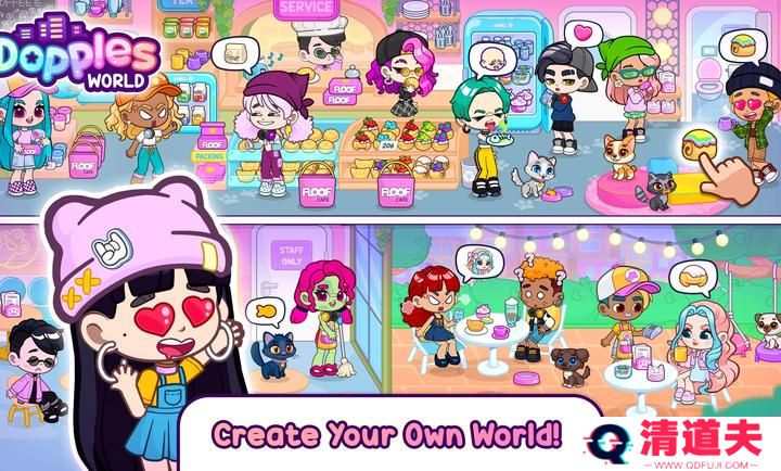 多普莱斯世界是一款非常有意思的休闲益智模拟类型的小游戏。玩家可以在游戏中使用更多不同的服装或者妆容,来装扮自己的角色,在这个愉快的小世界中进行探索!
