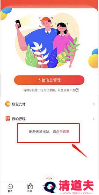 4、在刷脸出站时,如果遇到刷脸设备故障或提示无法出站情况,可打开App,点击生码按键,生成二维码,选择刷码出站。