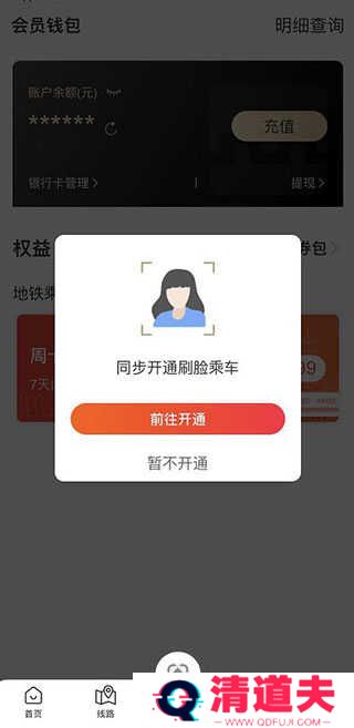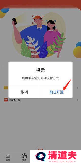 3、成功开通支付方式后,再点击前往开通按钮,就可以同步开通刷脸乘车功能了。