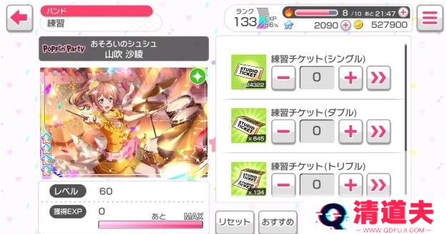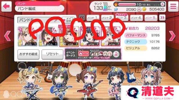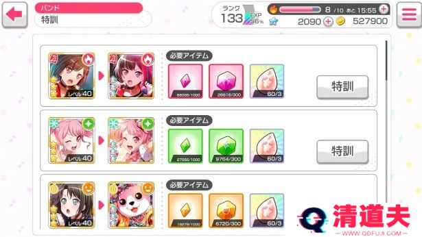 bangdream游戏里的乐队一共有5个,分别是:Poppin"Party、Roselia、Afterglow、Pastel*Palettes、 Hello, Happy World。再次强调一个乐队组合在一起好一点,比如我上面的破琵琶组合(Poppin"Party)。有了这一步你算是正式开始了。接下来你就开始打歌,除开活动就普通的打歌和协力,打活动协力可以得票,有票你就用来升级卡