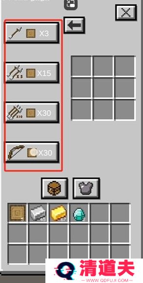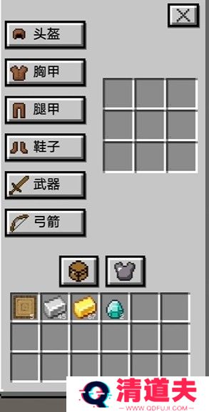 5、可以看见头盔、胸甲、腿甲、鞋子、武器和弓箭,所有都是可以合成的。