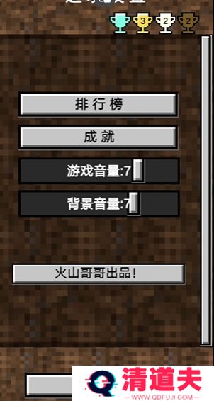 2、点击主页面的“选项”,可以看排行榜和成就,还能调节游戏音量。