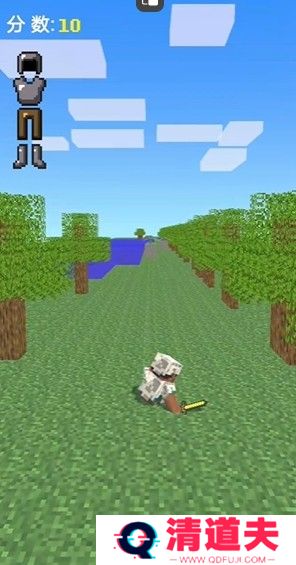10、路上会有很多的障碍物,还有一个飞行的怪物,用武器给他砍死,获取到对应的分数。