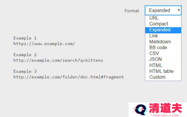 使用内置格式,如 URL、Compact、Expanded、Link、Markdown、BB 代码、CSV、JSON、HTML 和 HTML 表格。