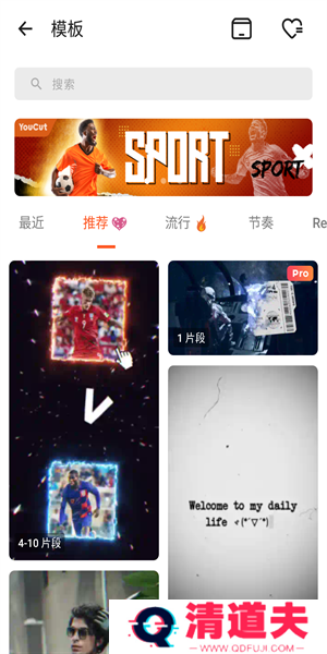 3、点击模版可以查看各种最新的热门模版,有推荐、流行、节奏等等。