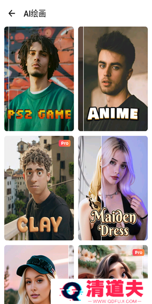 2、点击AI可以制作真人变动漫的视频效果,有很多模版可以选择。