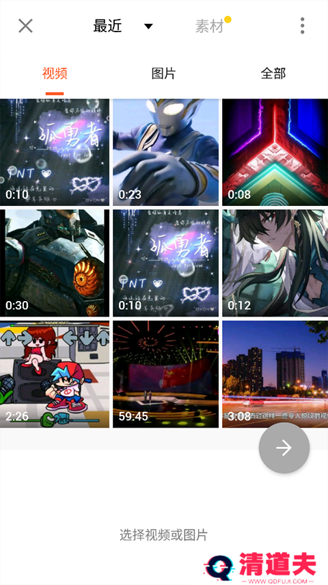 3、在之后的选择视频界面,点选一个需要做精确截取视频操作的视频文件。