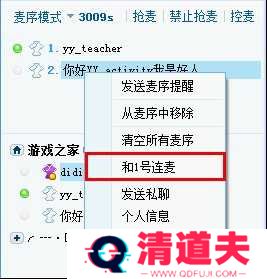 可以,管理员可通过点击麦序上的人(除1号麦序外)的右键菜单中的“和1号连麦”项,直接将受邀者和1号麦序连麦,如下图: