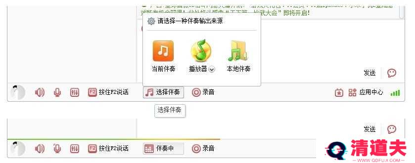 当前伴奏:当前电脑里的声音,例如网页里的伴奏/歌曲、播放器的伴奏;